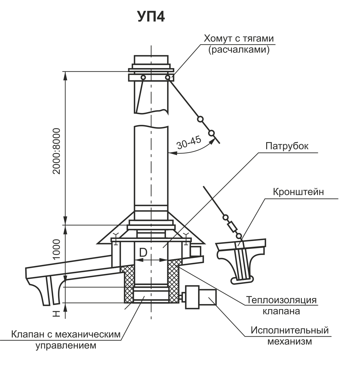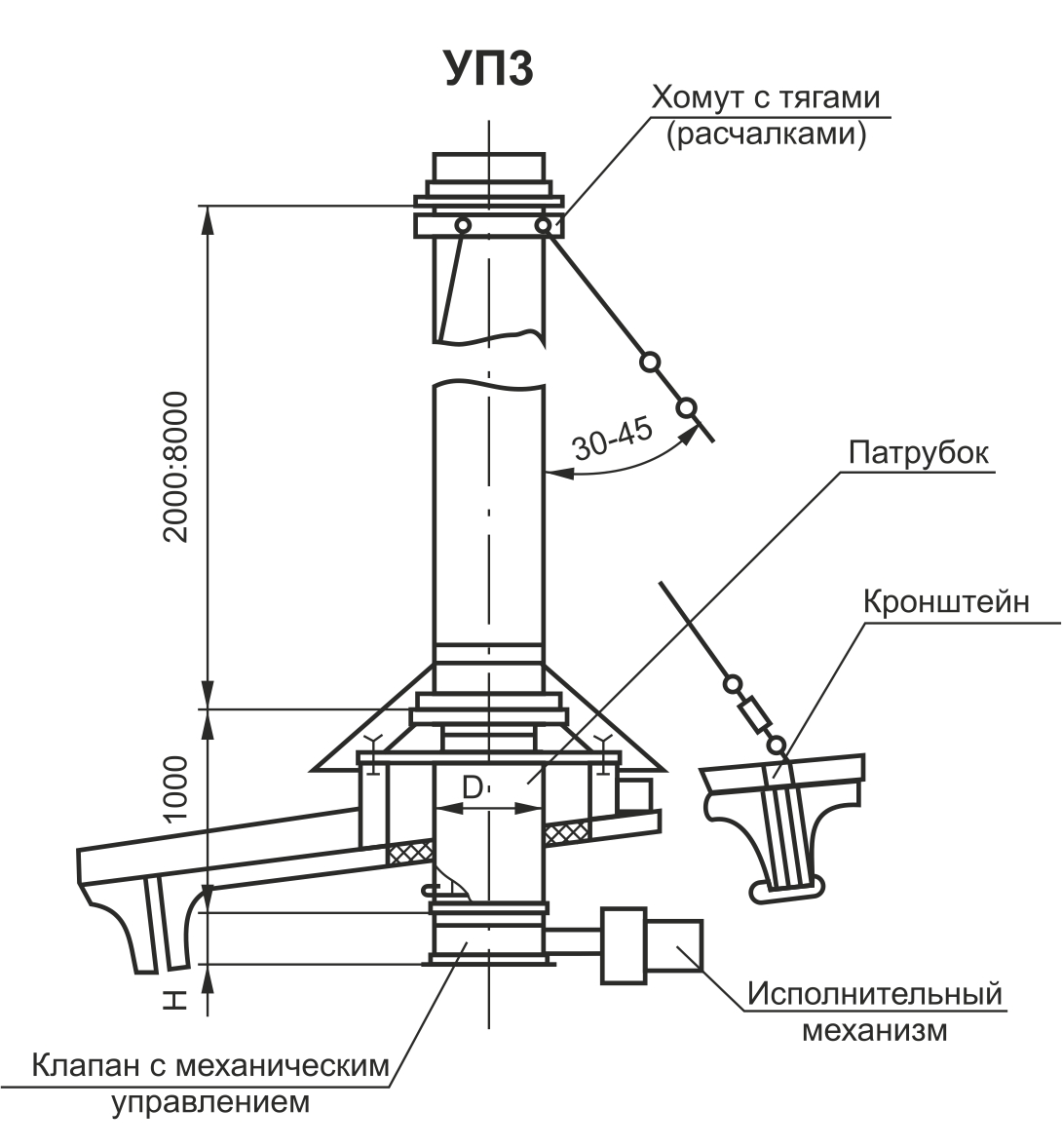 - la désignation de l'UPZ est attribuée aux appareils dotés d'une plate-forme spéciale pour l'actionneur de la vanne, prévue par la conception.