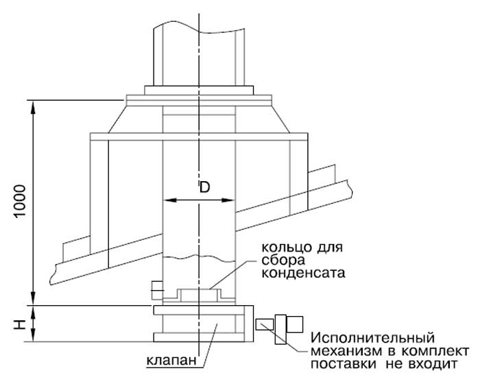 Pour protéger davantage la cheminée de ventilation de l'humidité, vous devez utiliser une jupe. Le collecteur de condensat est soudé au tuyau de dérivation.