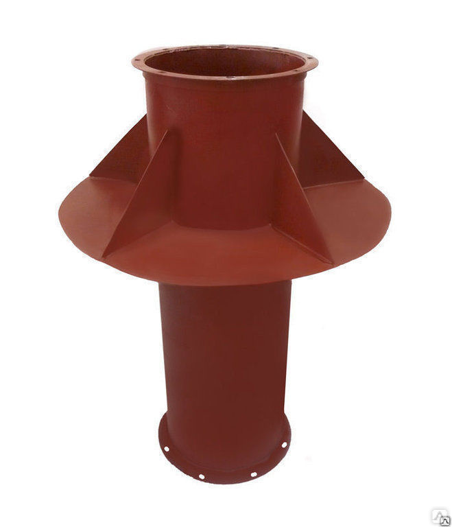 - TsAGI avec un diffuseur - une expansion du conduit de ventilation : la conception la plus efficace lorsque le débit du vent est supérieur à 2 m/s. La conception se compose d'une coupelle inférieure avec une extension à l'extrémité, d'un corps cylindrique en acier, d'un couvercle parapluie et de supports pour fixer le couvercle.