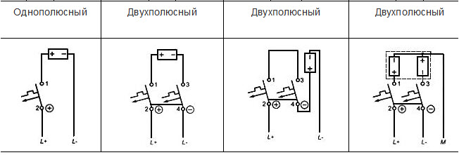 Selon le type de câblage, le pôle de la machine est sélectionné. Pour les réseaux monophasés, on utilise des réseaux à une et deux bornes ; pour un réseau électrique triphasé, on utilise des appareils à trois et quatre pôles.