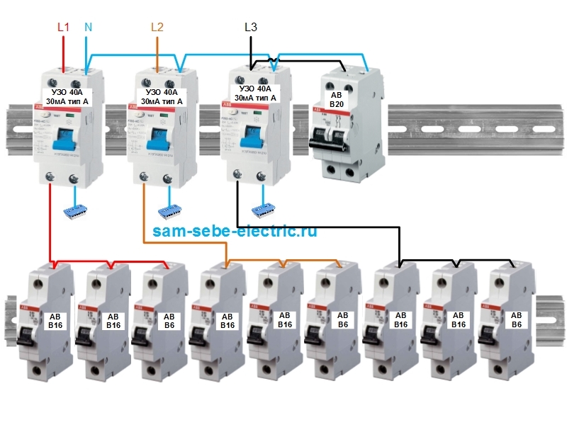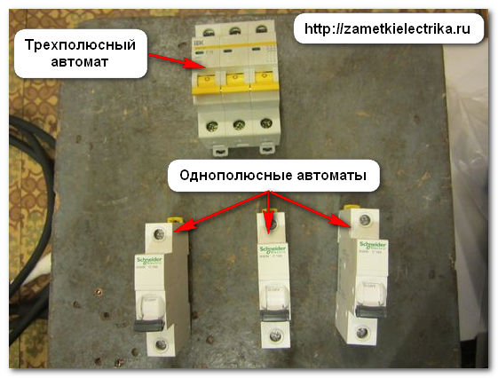 Dans le cas de l'aménagement d'un réseau triphasé, s'il n'y a pas de mise à la terre, un interrupteur tripolaire est installé. Dans le même temps, des fils de trois phases sont connectés au dispositif de protection et le zéro est transmis aux consommateurs par un circuit séparé.
