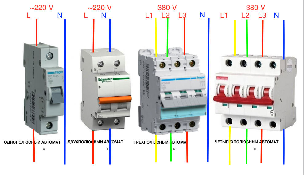 Il existe plusieurs types de machines : unipolaires, bipolaires, tripolaires et tétrapolaires. Les terminaux simples sont utilisés dans un réseau monophasé (une phase, deux, trois fils). Le neutre dans ce cas n'est pas protégé. Utilisé pour le groupe de prises ou pour l'éclairage. L'interrupteur bipolaire est utilisé pour le câblage électrique avec une phase et deux fils. Il peut être utilisé comme fusible d'introduction pour l'ensemble du réseau et pour protéger les appareils électriques individuels. Les appareils à deux pôles sont les plus courants.