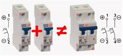Le remplacement d'un appareil bipolaire par deux appareils unipolaires est interdit par les règles du PUE.