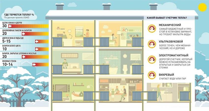 - Répartition équitable du paiement de l'énergie thermique fournie aux habitations. Les propriétaires soucieux de réduire les pertes de chaleur (par exemple, ceux qui s'occupent de l'isolation thermique d'un appartement ou d'une façade) devraient payer moins cher que ceux qui perdent constamment de la chaleur par des fissures ou une fenêtre ouverte.