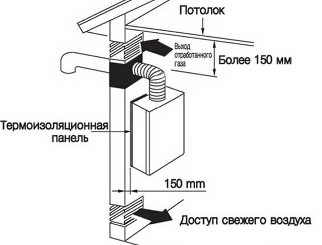 Pour les appareils à chambre de combustion ouverte, les principaux critères sont reflétés dans SNiP 2.04. 05-91. Si leur puissance ne dépasse pas 30 kW, ils peuvent être montés dans la cuisine, seulement il ne devrait pas y avoir de cuisinière.