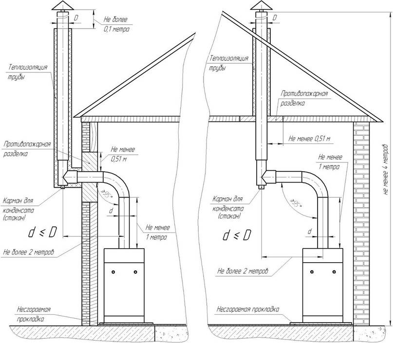 - La hotte d'une chaudière à gaz dans une maison privée a un diamètre plus grand que les canaux.