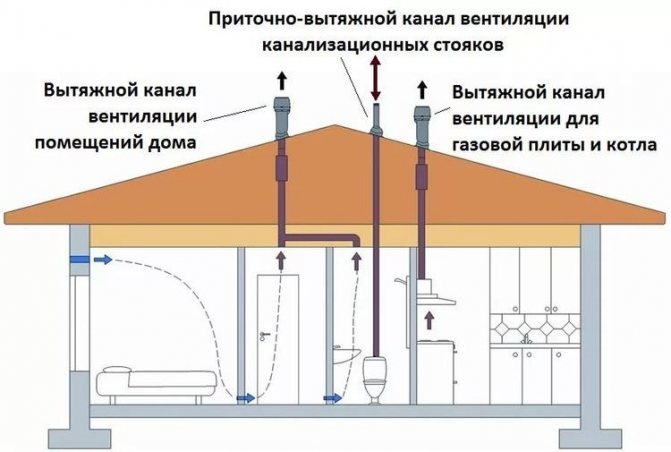 Il suffit de fournir le débit d'air requis depuis l'extérieur. Dans une maison particulière, tout dépend du projet. Ici, il est nécessaire de regarder un exemple spécifique, à quoi le système de ventilation existant est conçu.