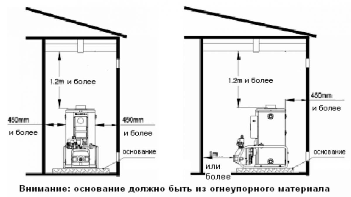 - Exigences pour la pièce, si la chaudière est placée dans une pièce séparée: volume - à partir de 7,5 m³, surface - à partir de 6 m², hauteur sous plafond - à partir de 2,5 m.