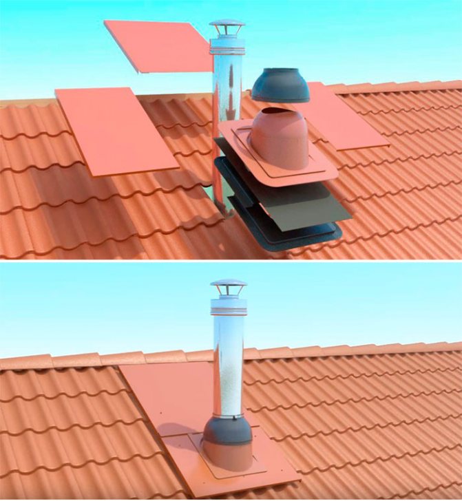 L'installation de bouches de ventilation sur les toits en tuiles métalliques et en tôles profilées est la même et est associée à une violation de la toiture, elle doit donc être effectuée avec beaucoup de soin afin que les feuilles de matériau de revêtement endommagées ne doivent pas être changées.