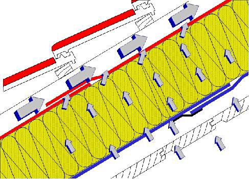 L'air qui monte du sol doit facilement pénétrer dans l'avant-toit et absorber l'humidité résultante et sortir au faîte.