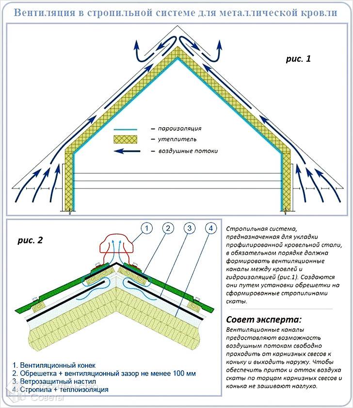 Les toitures métalliques sont très appréciées des promoteurs privés. Les matériaux de toiture légers et durables sont le plus souvent représentés par du carton ondulé et des tuiles métalliques. En plus de nombreuses qualités positives, le métal présente un inconvénient: il se condense lorsque la température baisse. Par conséquent, sans ventilation du toit en tôle ondulée, le toit pourrira tout simplement.