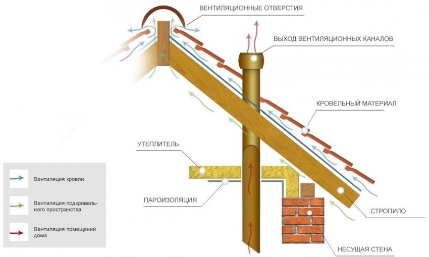 La ventilation de la pièce se produira efficacement avec la disposition appropriée du conduit de ventilation. Si vous étudiez les caractéristiques de l'installation, tout le travail peut être effectué indépendamment. Pour les toits en tuiles, il est recommandé d'installer la sortie de ventilation plus près du faîte.
