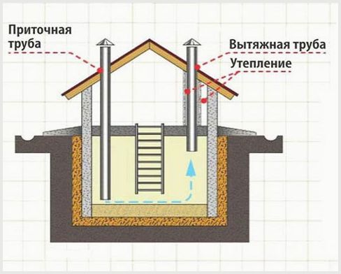 Il n'y a pas de fenêtres ou d'autres ouvertures au sous-sol qui servent à l'entrée et à la sortie du flux d'air. Afin d'organiser une circulation constante de l'air dans une pièce fermée, il est nécessaire de l'équiper de conduits d'évacuation et d'alimentation en air.