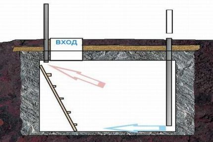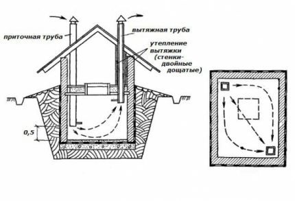 La circulation d'air dans le stockage souterrain peut être assurée naturellement ou artificiellement. Dans le premier cas, l'air pénètre par des ouvertures spéciales, et dans le second - à l'aide de ventilateurs (Figure 1).