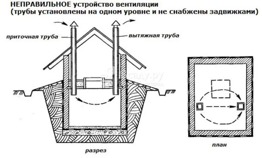 Mais une telle ventilation du sous-sol d'une maison de campagne ne fonctionnera pas si elle est utilisée comme stockage de légumes et de fruits en hiver.L'échange d'air ne sera pas assez efficace même avec une grande surface de la maison. Pour la ventilation du sous-sol d'un immeuble, les bouches d'aération ne sont utilisées que comme moyen supplémentaire. Le principal est choisi par l'autre système de ventilation par tuyau (alimentation et évacuation) du sous-sol d'un immeuble résidentiel.