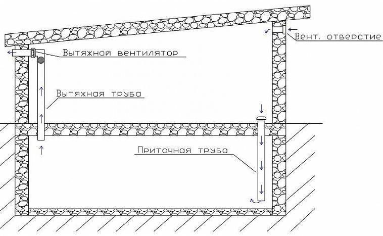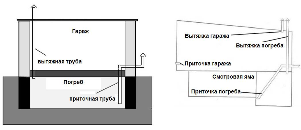 Le schéma de ventilation adéquate de la cave dans le garage