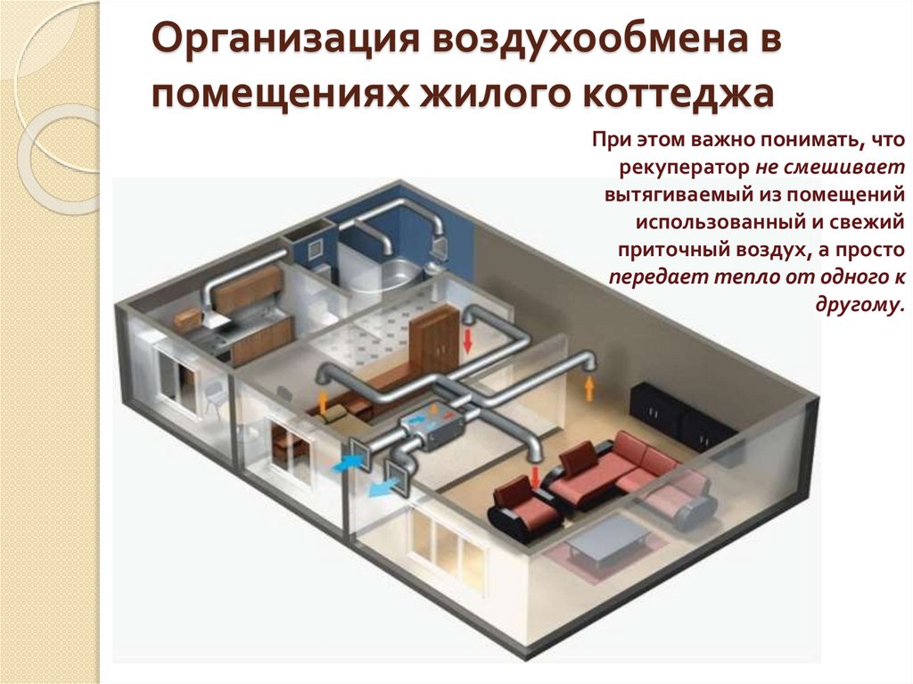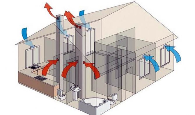 Afin de réaliser pratiquement un échange d'air à part entière, deux types de ventilation sont utilisés dans la zone résidentielle: alimentation naturelle et forcée. De manière naturelle, la circulation de l'air est assurée par la ventilation et en raison de la présence d'espaces dans les portes et les fenêtres, et dans les maisons en rondins en raison des espaces entre les rondins. Cependant, une telle mesure ne permet pas un échange gazeux à part entière et sa multiplicité est plutôt faible.