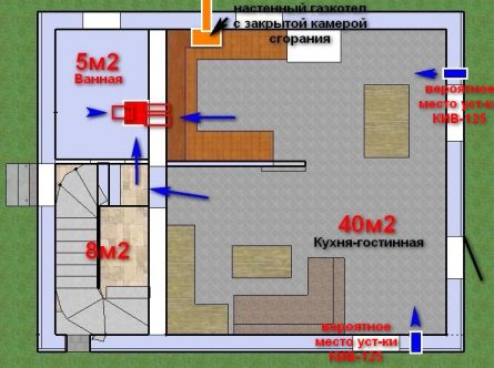 - Des conduits d'air séparés au niveau du grenier sont connectés en un seul canal, qui est amené dans la rue par le toit ou connecté à un échangeur de chaleur, un ventilateur de conduit. Toutes les ouvertures sont soigneusement scellées et scellées.