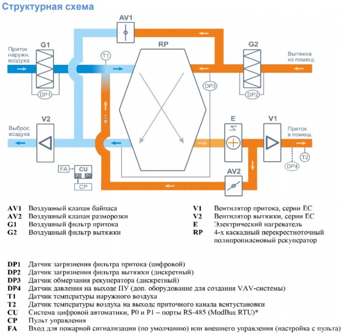- Pour maintenir le régime de température optimal dans la pièce, le système est équipé d'unités de chauffage de l'air provenant de la rue.