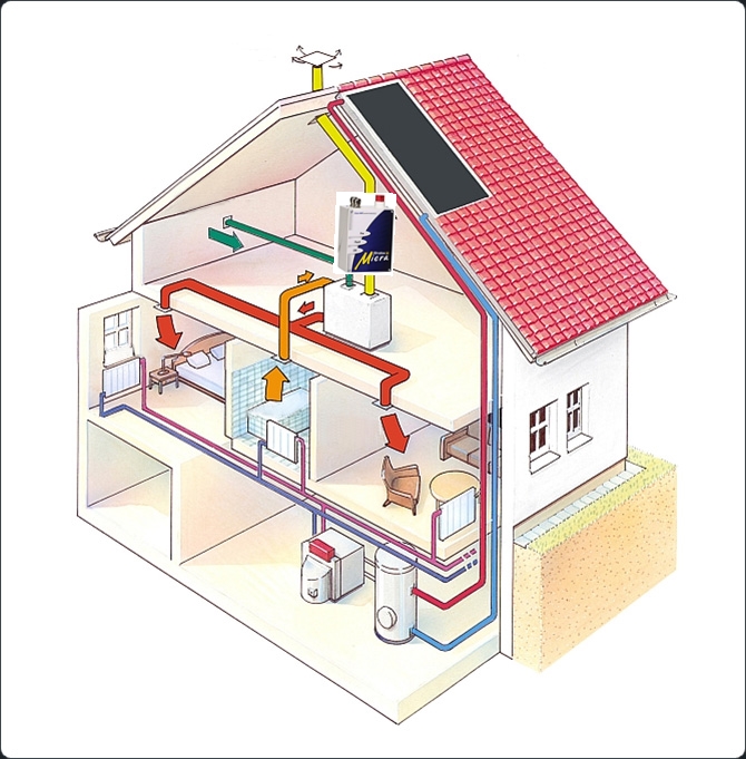 Si la maison dispose d'une chaudière à sortie coaxiale, le ventilateur intégré crée automatiquement une atmosphère favorable à l'habitation humaine.