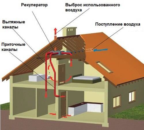 Les maisons à ossature standard sont faites de matériaux non respirants, de sorte que la conception du système est établie avec l'aménagement de la maison. Et puis, avec l'amélioration de l'habitat, il est réalisé selon des dessins et des schémas spécialement sélectionnés pour le type de bâtiment