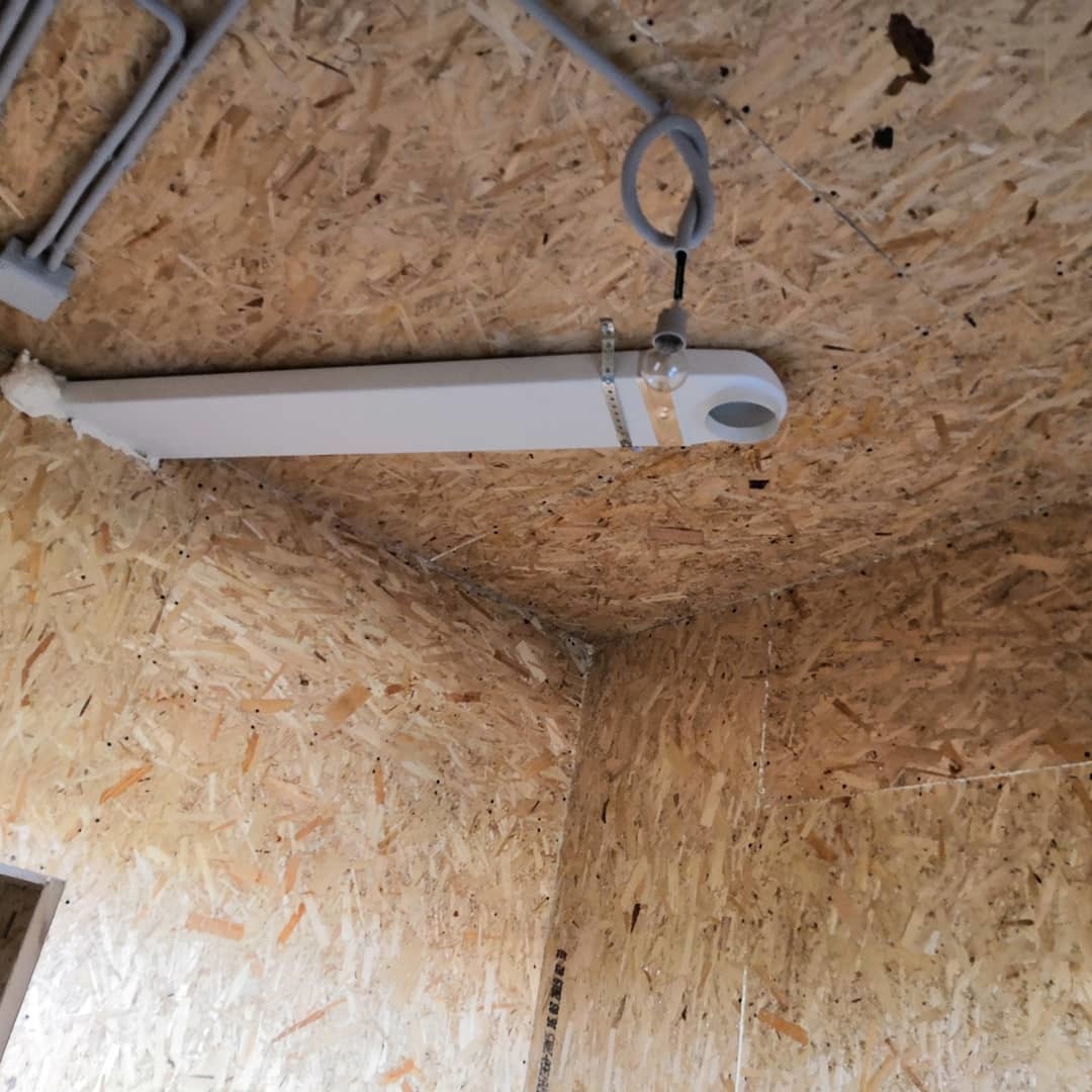 Le tuyau d'échappement est posé sous le plafond lors de la construction de la maison