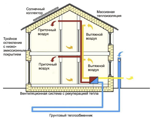 La maison à ossature standard a une structure économe en énergie et hermétique, qui est complétée par des fenêtres et des portes en plastique. Cela provoque un réchauffement constant de l'air à l'intérieur de la pièce, car il n'y a pas d'échange à part entière avec l'environnement aérien entourant la maison.