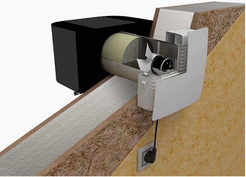 - Ventilation avec vannes d'admission équipées de ventilateurs. Ce dernier peut être allumé et éteint manuellement, ainsi que contrôlé électroniquement, en tenant compte de l'humidité et de la température de la pièce.