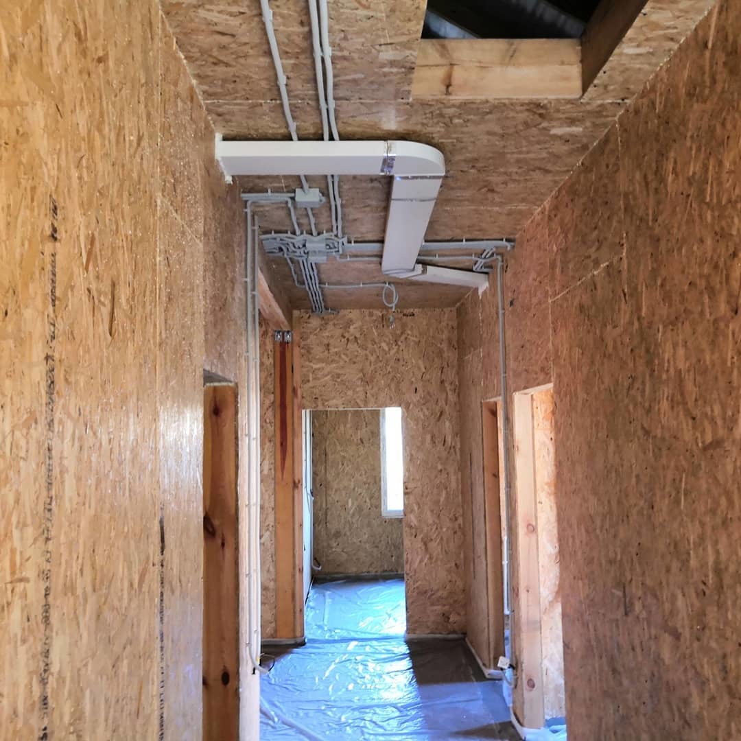 il est impossible de poser des conduits d'air verticaux dans les parois des panneaux SIP, ces derniers sont donc montés à l'air libre, puis décorés ou recouverts de panneaux;