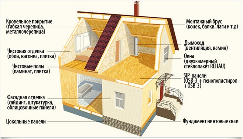 - Bon marché. Le prix d'une maison en panneaux sandwich est le plus bas - et c'est l'avantage le plus important de cette technologie.