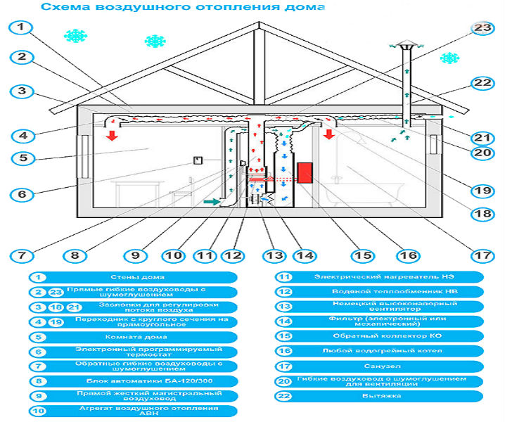 La récupération d'air est utilisée pour lutter contre les pertes de chaleur. Son essence réside dans les radiateurs soufflants qui éliminent l'air sale, retiennent toute la chaleur, après quoi toute l'énergie thermique est renvoyée dans la maison, fournissant la température optimale, le microclimat dans la maison et économisant sur le chauffage.