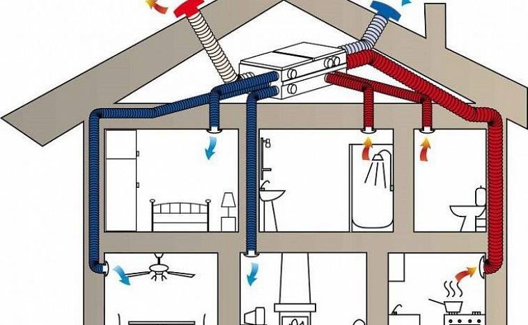 Par les canaux, l'air doit d'abord passer par la chambre des enfants, le salon, les chambres, et ensuite seulement aller dans la cuisine, la salle de bain, la chaufferie (là l'air sera le plus pollué, et s'il va dans l'ordre inverse, il ne sera pas très confortable de respirer dans les chambres, et diverses maladies virales peuvent apparaître, notamment respiratoires) ;