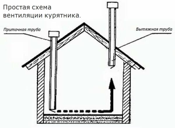 Le moyen le moins cher et le plus élémentaire d'organiser l'échange d'air dans un poulailler est la ventilation transversale habituelle.