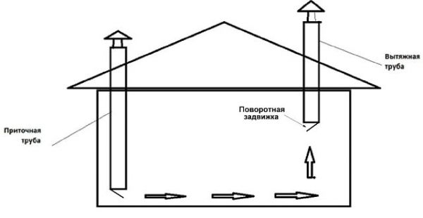 Une option plus pratique pour la ventilation est l'installation de tuyaux d'alimentation et d'évacuation. Tout matériau convient à leur fabrication, mais il est préférable d'utiliser du bois. De plus, il est nécessaire d'installer plusieurs bouchons sur chaque tuyau, à l'aide desquels il sera possible de réguler le débit d'oxygène à l'avenir (Figure 2).