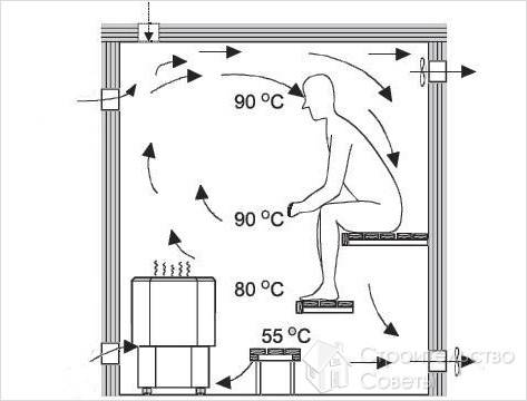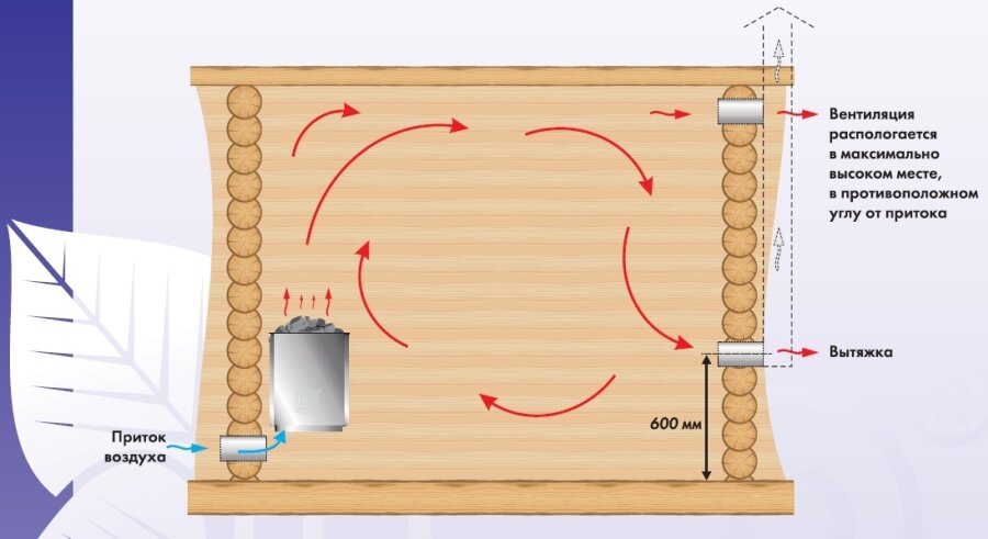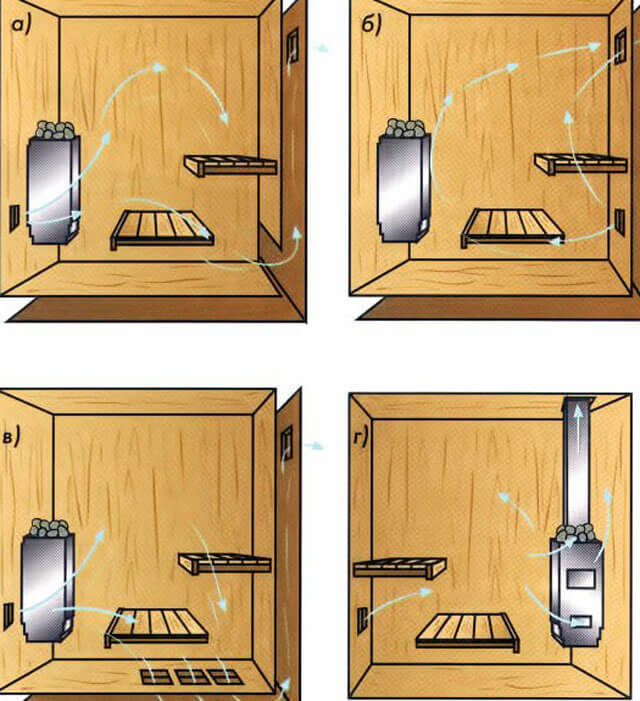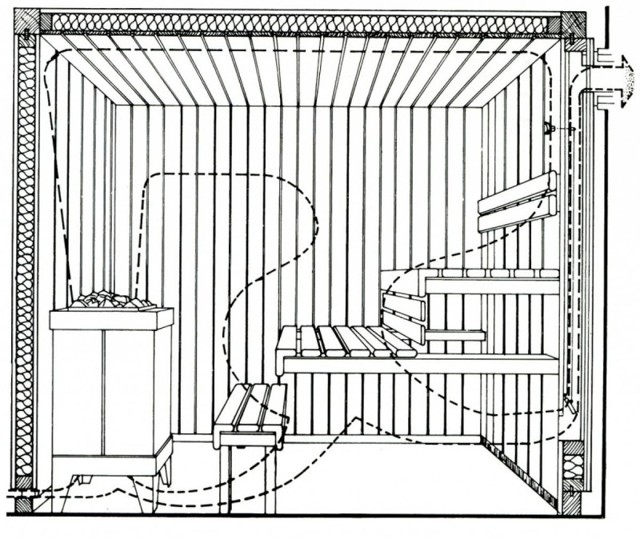 Ventilation d'alimentation et d'extraction dans le sauna - schéma d'agencement