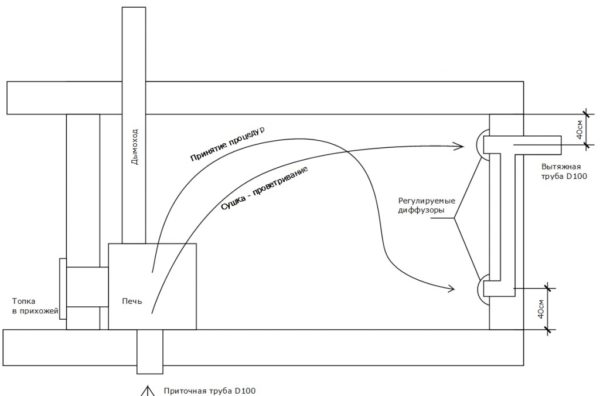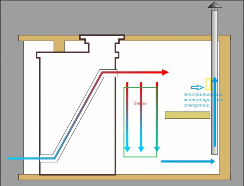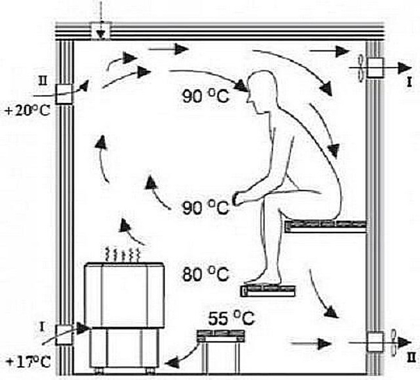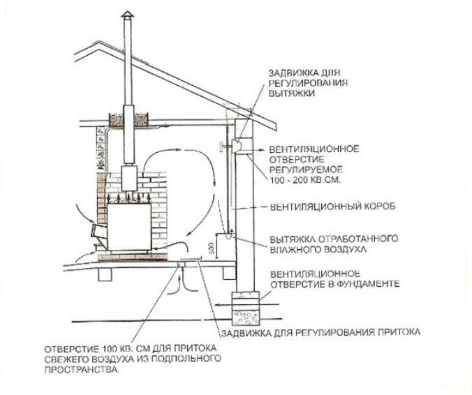 Si vous voulez savoir comment ventiler correctement le bain et le hammam, considérez ce schéma au stade de la conception et avant d'installer le poêle