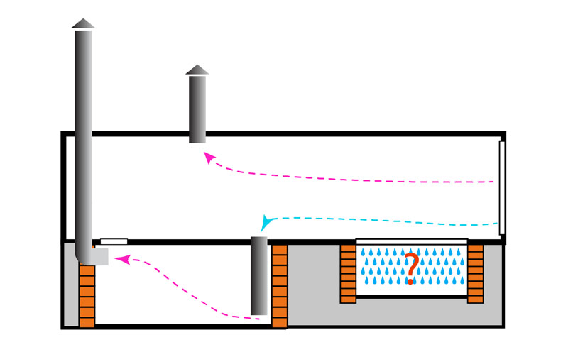 En l'absence ou le fonctionnement insuffisamment efficace du système de ventilation, le sous-terrain sera humide. En raison du manque d'oxygène, un environnement favorable sera formé pour le développement de bactéries anaérobies. En plus de tout, le dioxyde de carbone s'accumulera