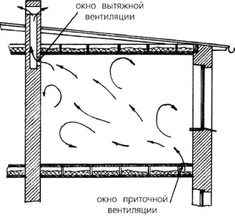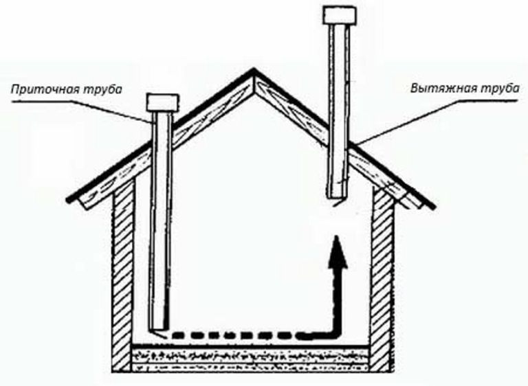 La conception correcte environ 2 fois par heure change complètement l'air de la pièce. Le schéma de circuit à circulation naturelle est défini dans le projet au stade initial de sa création.