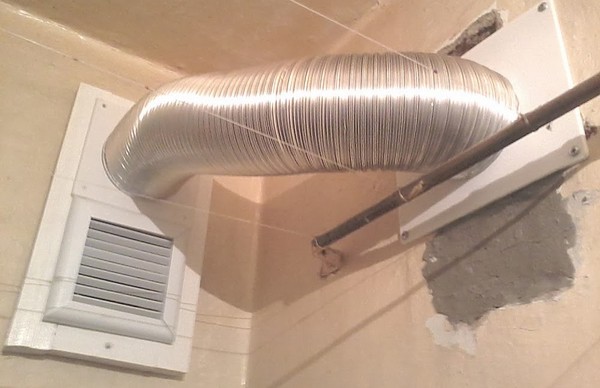 Lors de la création d'une ventilation par conduit dans la salle de bain, une boîte en carton ondulé flexible n'est utilisée que dans de petites zones où l'installation d'autres structures est impossible ou difficile