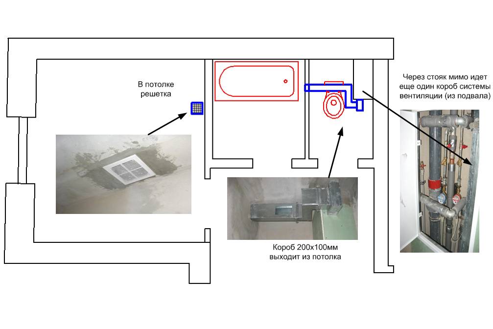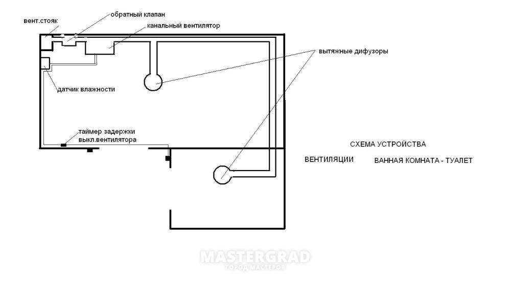 Vous devez d'abord choisir un emplacement pour l'évent dans la salle de bain et les toilettes. Ensuite, il est nécessaire d'établir un plan pour l'emplacement du conduit de ventilation, le long duquel les masses d'air sortiront.
