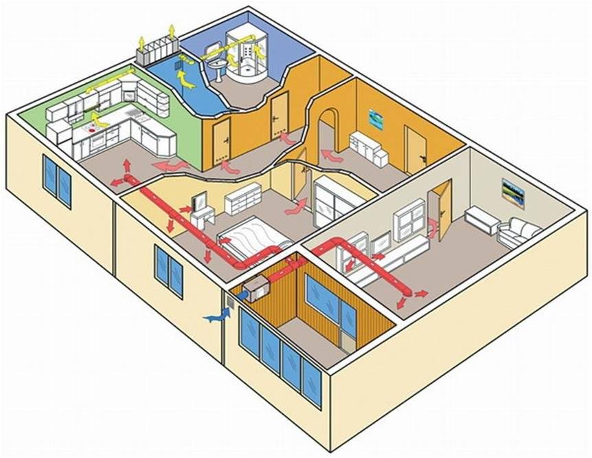 Dans les maisons individuelles, la sortie d'air est le plus souvent organisée depuis la cuisine et les salles de bain. Dans d'autres salles, il est organisé à la demande et au besoin.