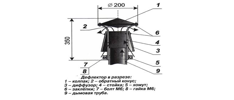 Très souvent, des déflecteurs sont installés sur la cheminée, il est installé dans le but d'offrir un bon tirage pour l'évacuation des fumées.Ainsi, le déflecteur augmente le fonctionnement de l'équipement de vingt pour cent, cela augmente la meilleure combustion du combustible et améliore le transfert de chaleur.