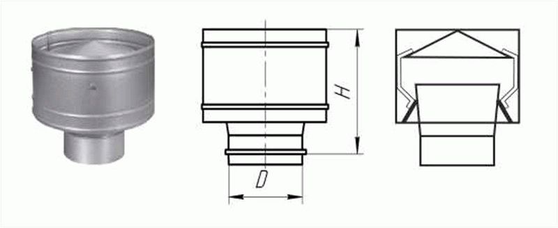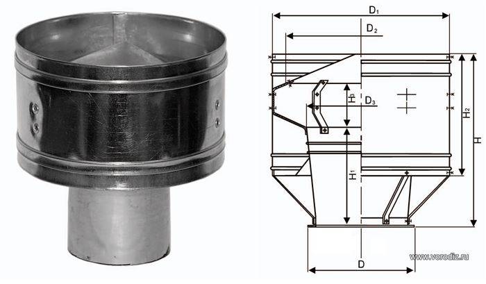 L'étape suivante consiste à déterminer les dimensions du déflecteur. Ils, comme la forme, dépendent directement de la taille de la cheminée ou du tuyau du système de ventilation.