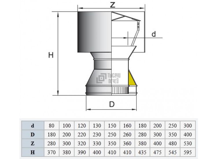 Un parapluie est installé sur la cheminée afin d'augmenter le tirage en déviant les flux d'air. Des déflecteurs de conception correcte empêchent les phénomènes atmosphériques de pénétrer dans la cheminée - neige, pluies obliques (voir).