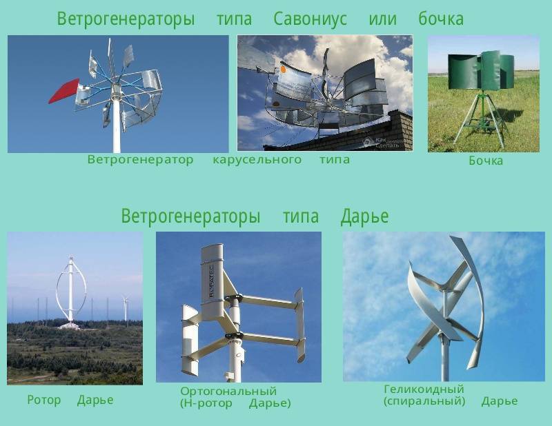Il n'est pas nécessaire de décrire tous les types en détail, car leur nombre ne cesse d'augmenter.Presque tous les nouveaux développements sont basés sur un axe de rotation vertical et sont destinés à être utilisés dans des maisons privées ou des domaines. La plupart des développements offrent leur propre solution au problème principal des appareils verticaux - le faible rendement. Certaines variantes ont des taux assez élevés, mais ont une structure de coque complexe (par exemple, la conception de Tretiakov).