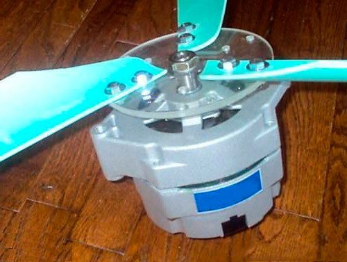 - 3ème étape.Vous pouvez fabriquer un nouveau rotor soit à partir d'un seau en aluminium, en le divisant en 4 pales, soit en le découpant dans un tuyau d'eau. Fixez au générateur avec des boulons.