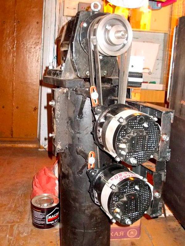 - Inconvénients : pour le fonctionnement, une vitesse de rotation élevée est nécessaire, par conséquent, l'installation de poulies supplémentaires est nécessaire. Improductif.