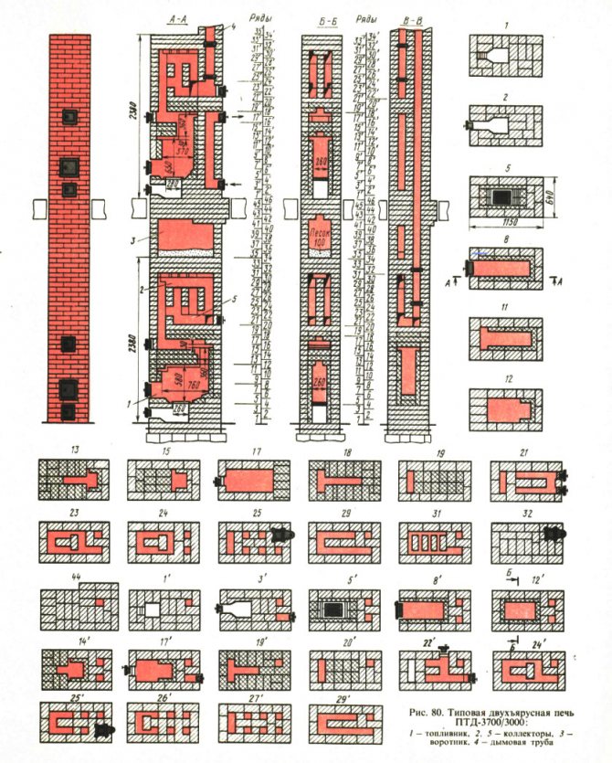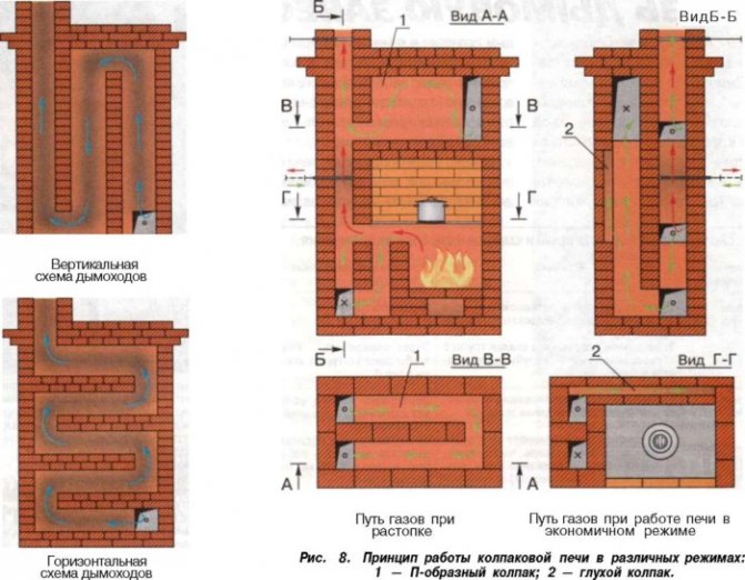 - Circulation des fumées (convecteur) - canaux verticaux (parfois horizontaux) à travers lesquels passent les gaz chauds du four. Ils relient le foyer à la cheminée et accumulent de l'énergie thermique.