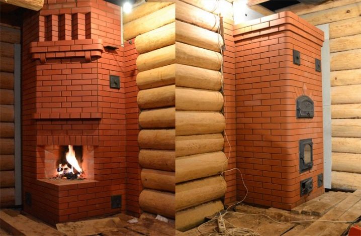 À certains égards, ils ressemblent aux grossiers décrits ci-dessus, mais ils diffèrent par une conception spéciale - dans leur conception, il y a des radiateurs remplis de pierres. La chambre de combustion en eux ne va pas dans le hammam, mais dans la pièce voisine. Si nécessaire, les portes des foyers sont en verre - grâce à cela, une cheminée est formée dans le dressing, qui constitue une excellente décoration.
