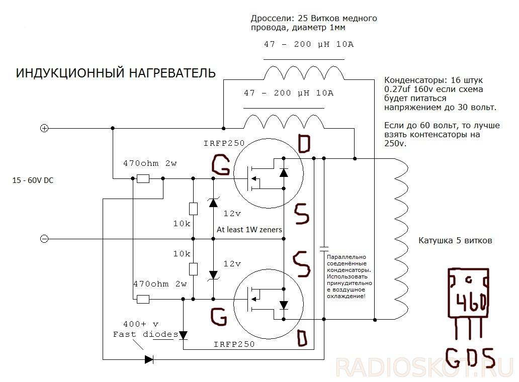 2. Les transistors de puissance puissants sont la partie la plus chère d'une configuration à induction maison. Pour monter le circuit générateur de fréquence, il est nécessaire de préparer 2 de ces éléments. À ces fins, les transistors de marques conviennent: IRFP-150; IRFP-260 ; IRFP-460. Dans la fabrication du circuit, 2 transistors à effet de champ identiques parmi ceux répertoriés sont utilisés.
